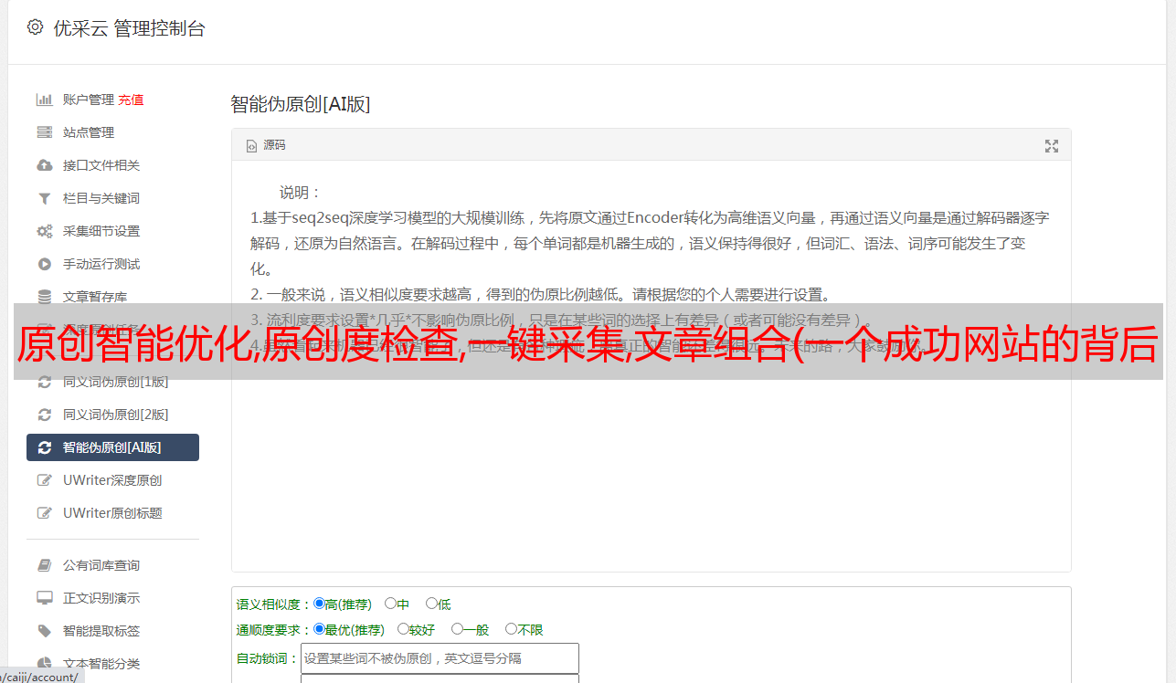 原创智能优化,原创度检查,一键采集,文章组合(一个成功网站的背后一定一定少不了一个 )