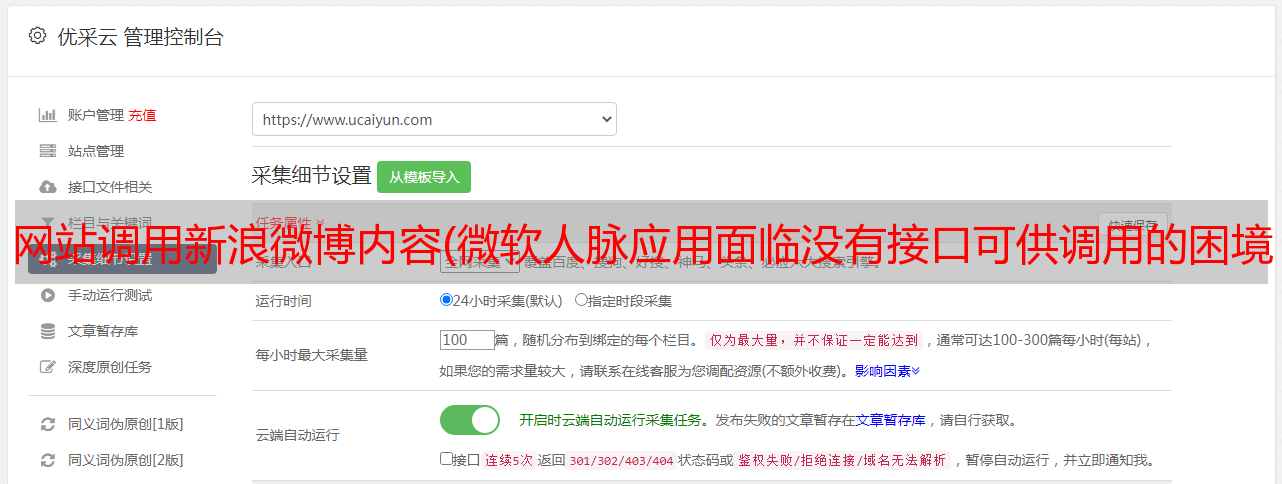 优采云 发布时间: 2021-09-02 19:07网站调用新浪微博内容(微软人脉应用面临没有接口可供调用的困境(组图))