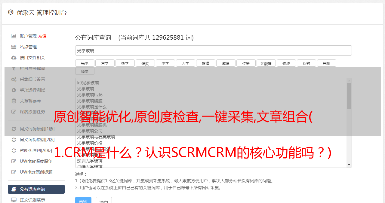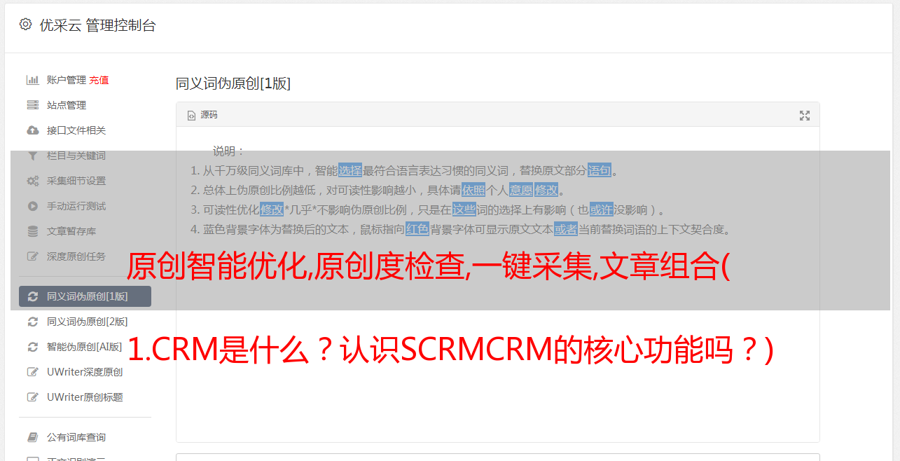 原创智能优化,原创度检查,一键采集,文章组合( 1.CRM是什么?认识SCRMCRM的核心功能吗?)