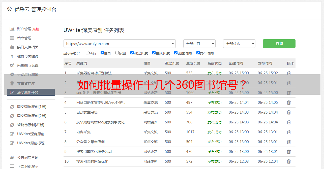 优采云 发布时间: 2020-08-18 10:39如何批量操作十几个360图书馆号?