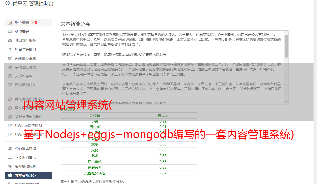 内容网站管理系统( 基于Nodejs+eggjs+mongodb编写的一套内容管理系统)