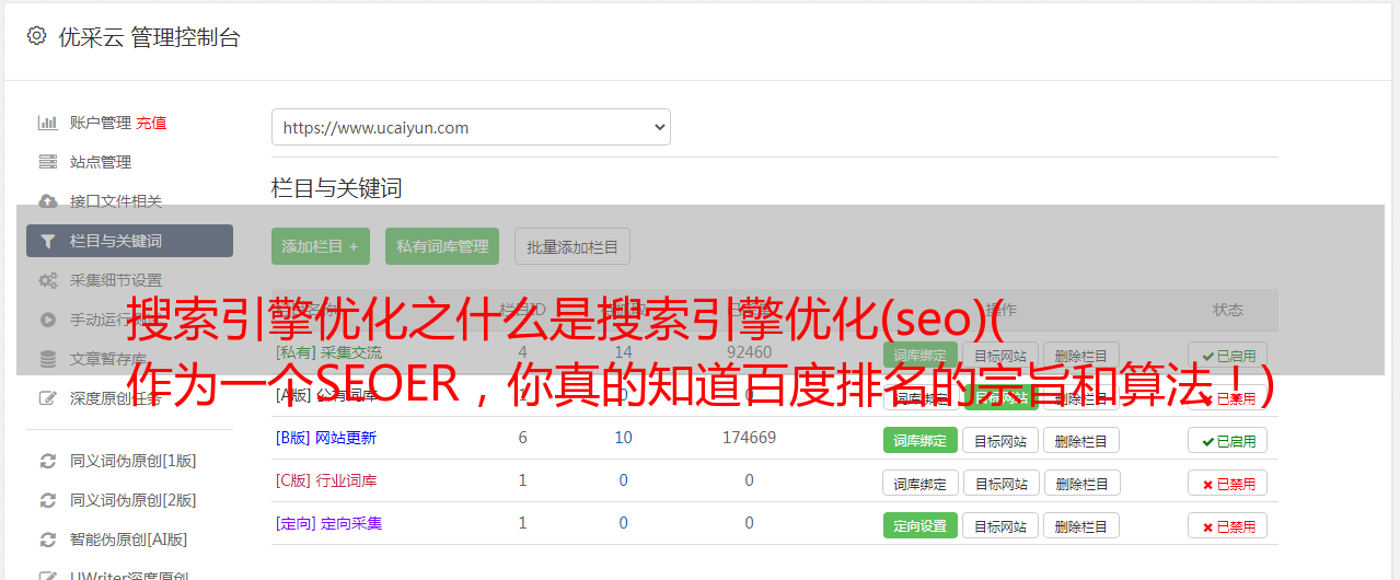 基础还是网站的框架和代码,静态上有利于搜索引擎的抓取,但是如何让百度更好的识别网站的内容呢?给的几条建议是新的网站,初期不要放太多内容,不管你的产品是什么,都要懂得放弃,挖出核心产品,做SEO推广首先是这个产品。这样百度就可以识别出网站的核心主题并分配权重,不会导致关键词过多,权重分散。核心产品制作完成后,网站有权重后会逐步扩大其他产品的推广,而不是一开始就多做一个,所以一定要用“农村包围城市”的策略。如果你的网站要这样做再优化,我只能说,不要厌烦自己。