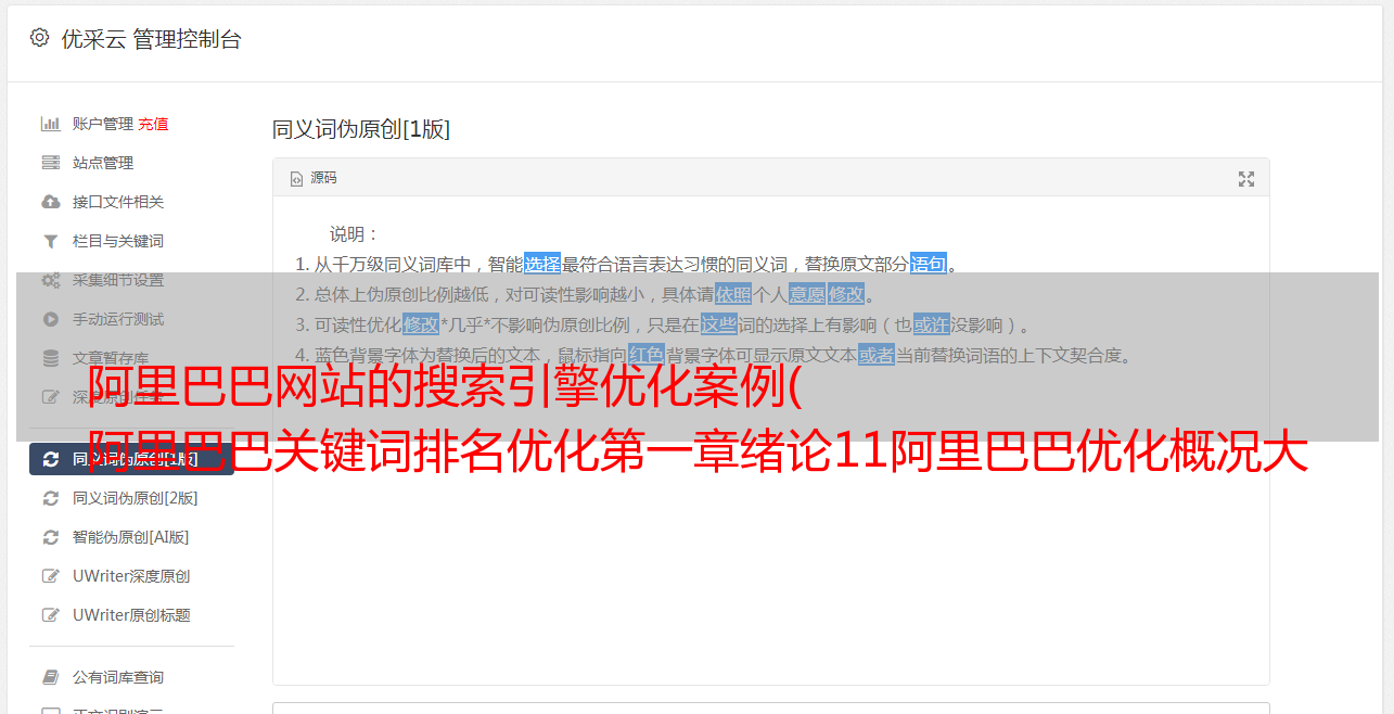 优采云 发布时间: 2021-09-03 21:09阿里巴巴网站的搜索引擎优化案例(