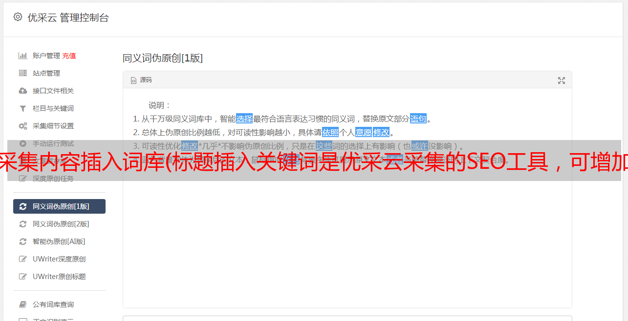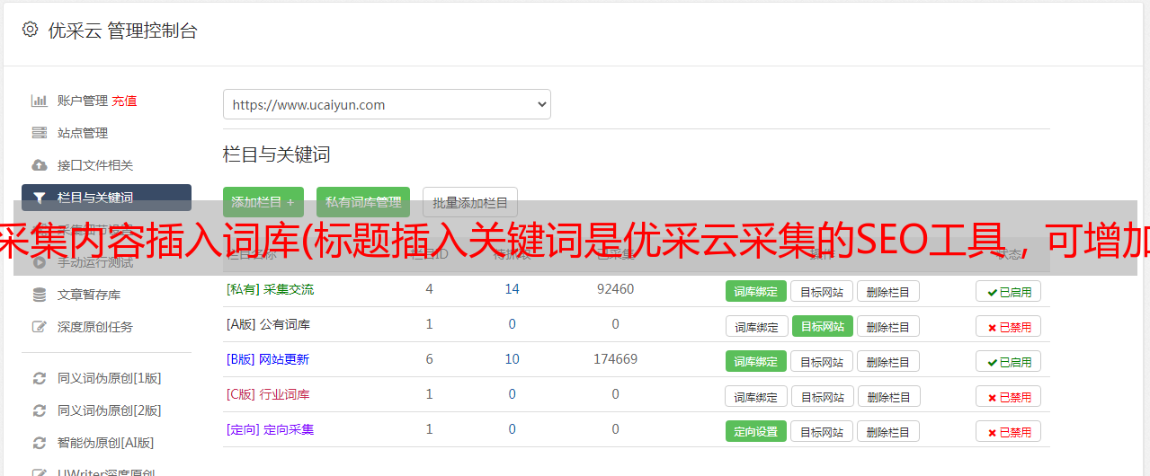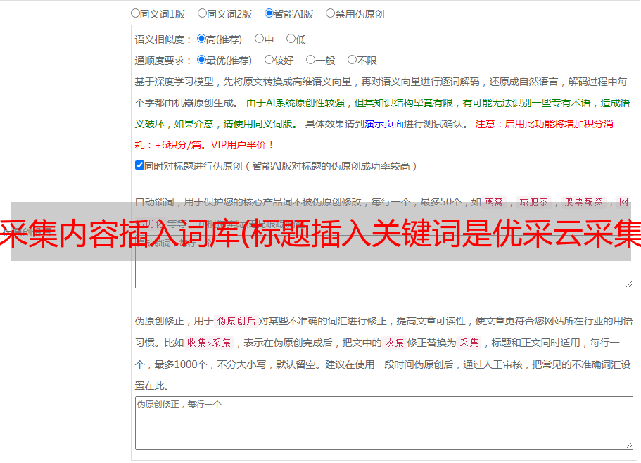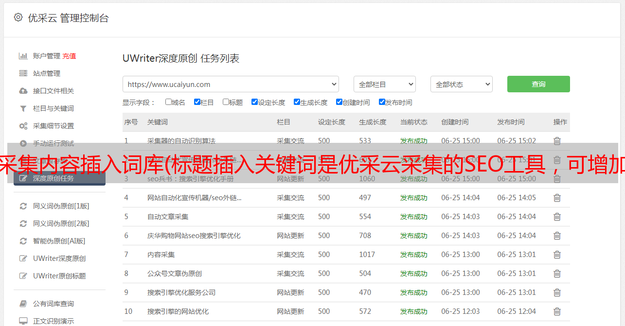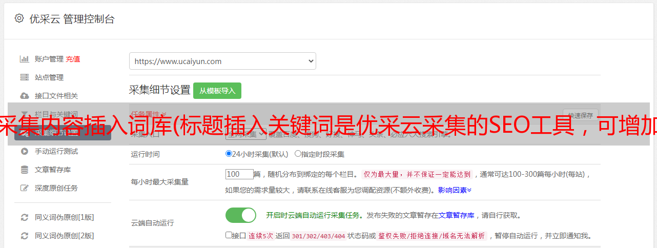 采集内容插入词库(标题插入关键词是优采云采集的SEO工具,可增加SEO收录 )