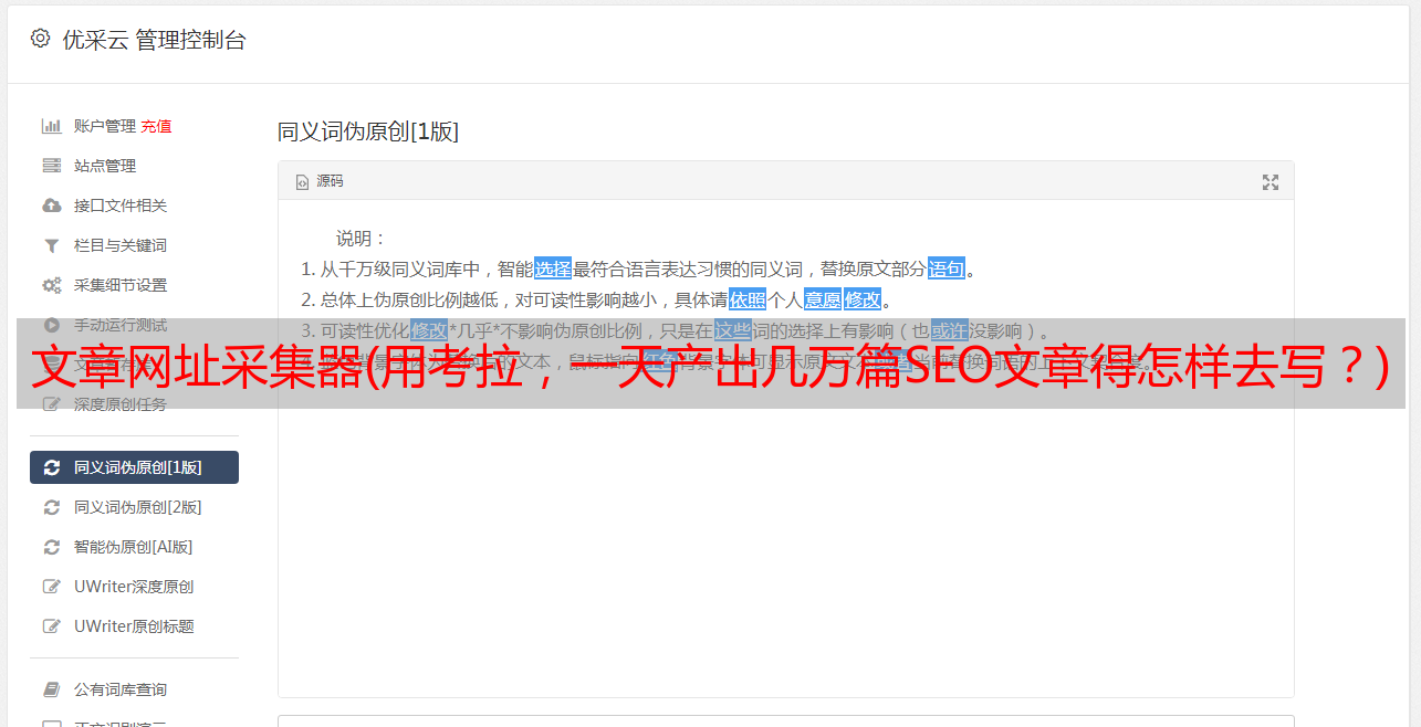 优采云 发布时间: 2021-09-04 05:04文章网址采集器(用考拉,一天产出几万篇SEO文章得怎样去写?)