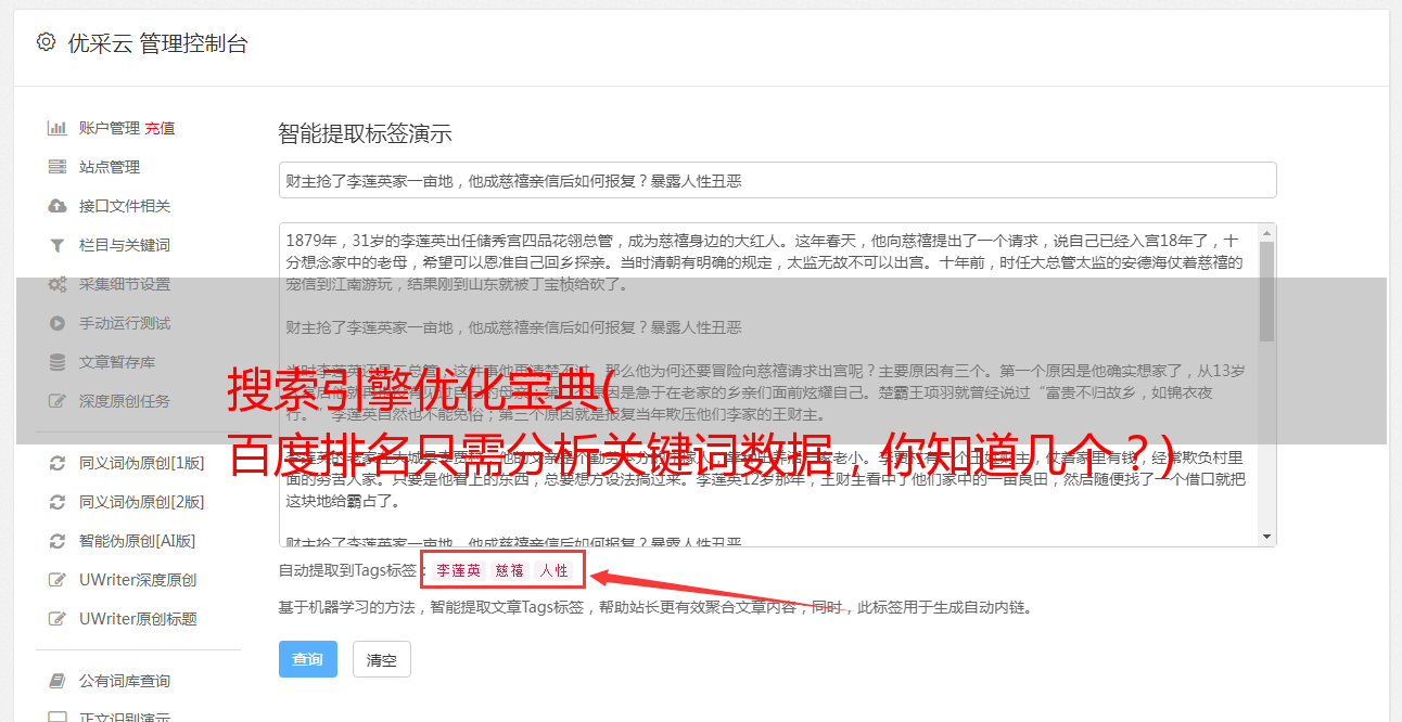 数据分析对百度排名非常重要。数据分析不仅仅是网站的内部数据。我们也应该分析一下百度给出的数据。这是一个很重要的任务,比如百度索引需求图,他在用户搜索这个词后就清楚地告诉你他的需求,这样的数据对你优化很重要,你的网站内容提供了用户需要的。 ,那你的用户体验自然不用说了,用户喜欢,搜索引擎也喜欢。这个详细操作可以参考:百度排名只需要分析关键词数据即可。