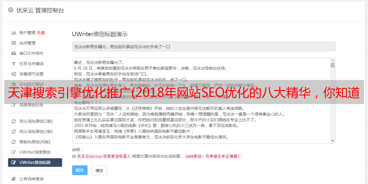 优采云 发布时间: 2021-09-04 09:17天津搜索引擎优化推广(2018年网站SEO优化的八大精华,你知道吗?)
