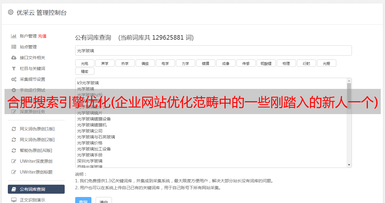 优采云 发布时间: 2021-09-04 12:05合肥搜索引擎优化(企业网站优化范畴中的一些刚踏入的新人一个)