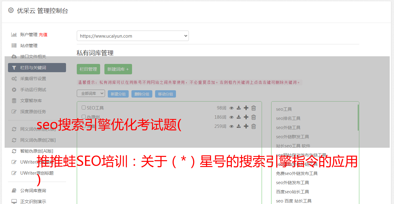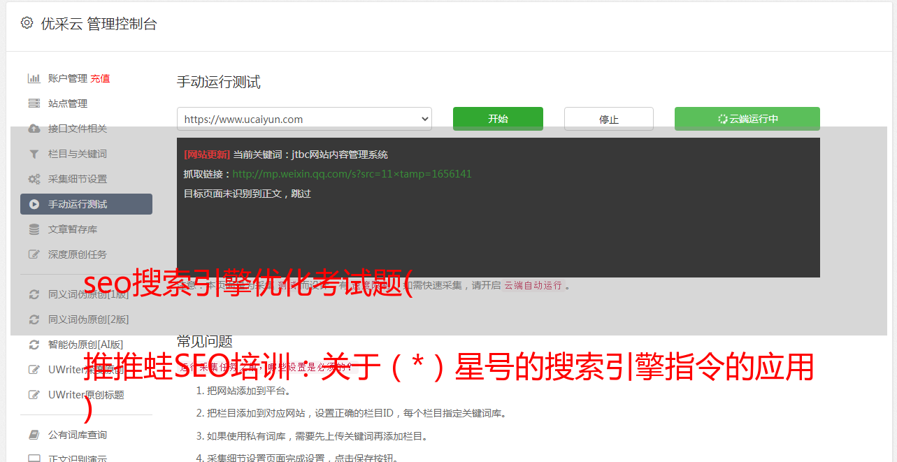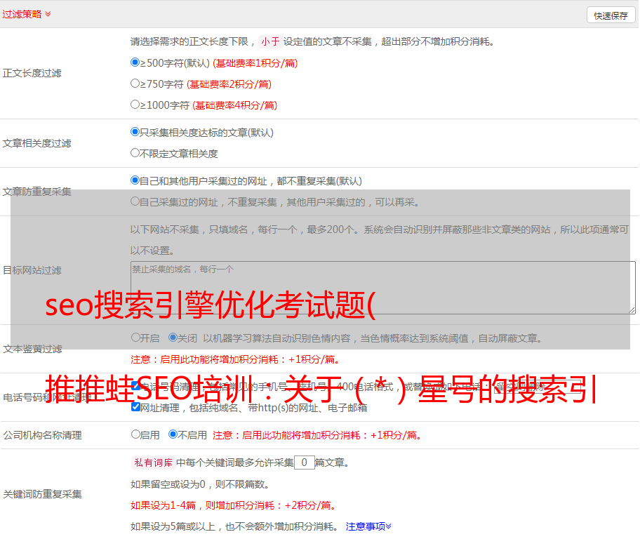 seo搜索引擎优化考试题( 推推蛙SEO培训:关于(*)星号的搜索引擎指令的应用 )
