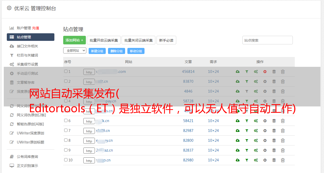 网站自动采集发布( Editortools(ET)是独立软件,可以无人值守自动工作)