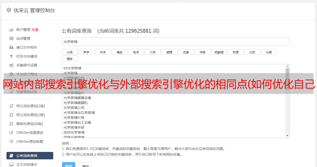 优采云 发布时间: 2021-09-04 15:18网站内部搜索引擎优化与外部搜索引擎优化的相同点(如何优化自己的网站排名?百度推广与SEO的区别)