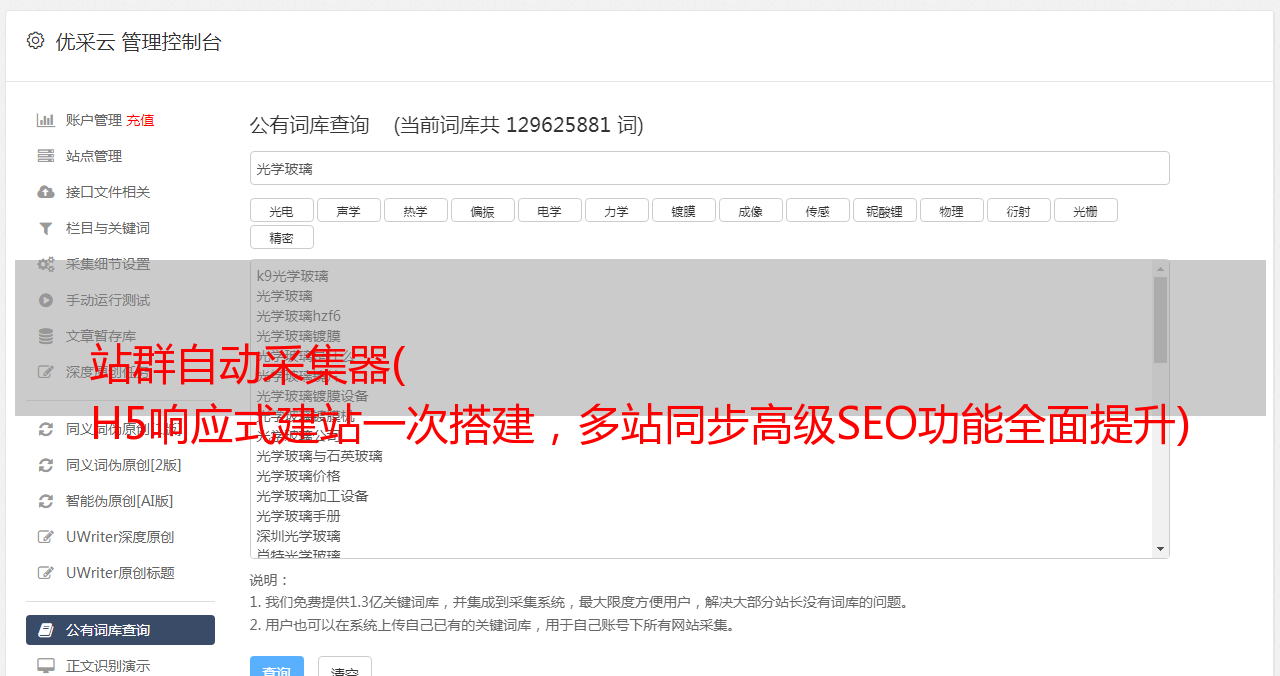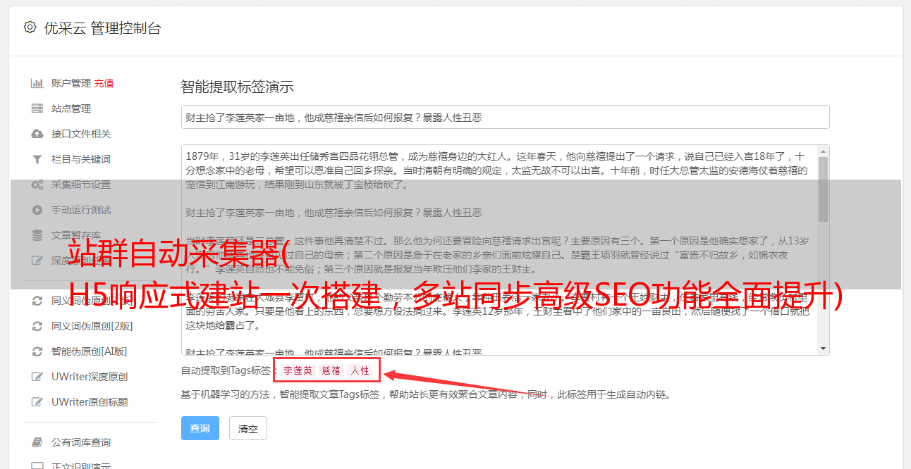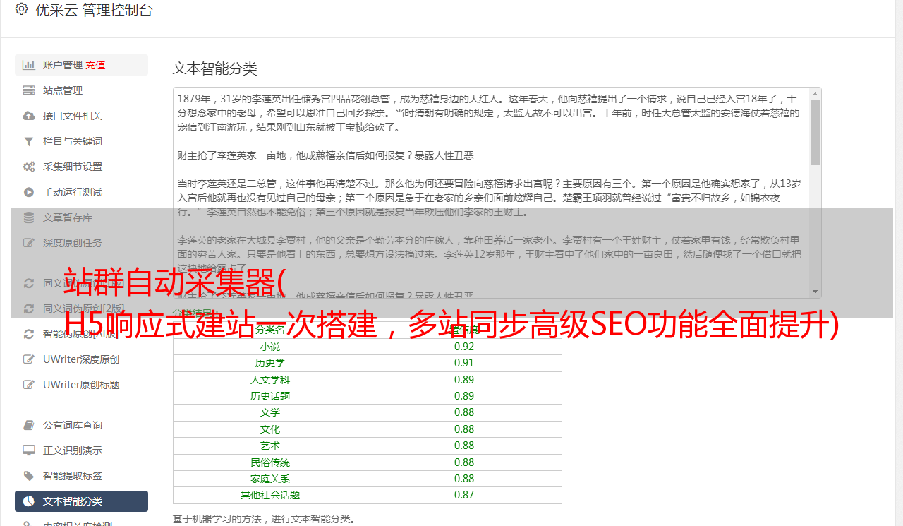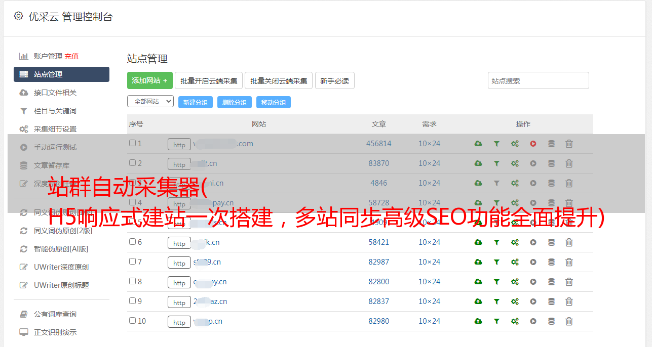 站群自动采集器( H5响应式建站一次搭建,多站同步高级SEO功能全面提升)