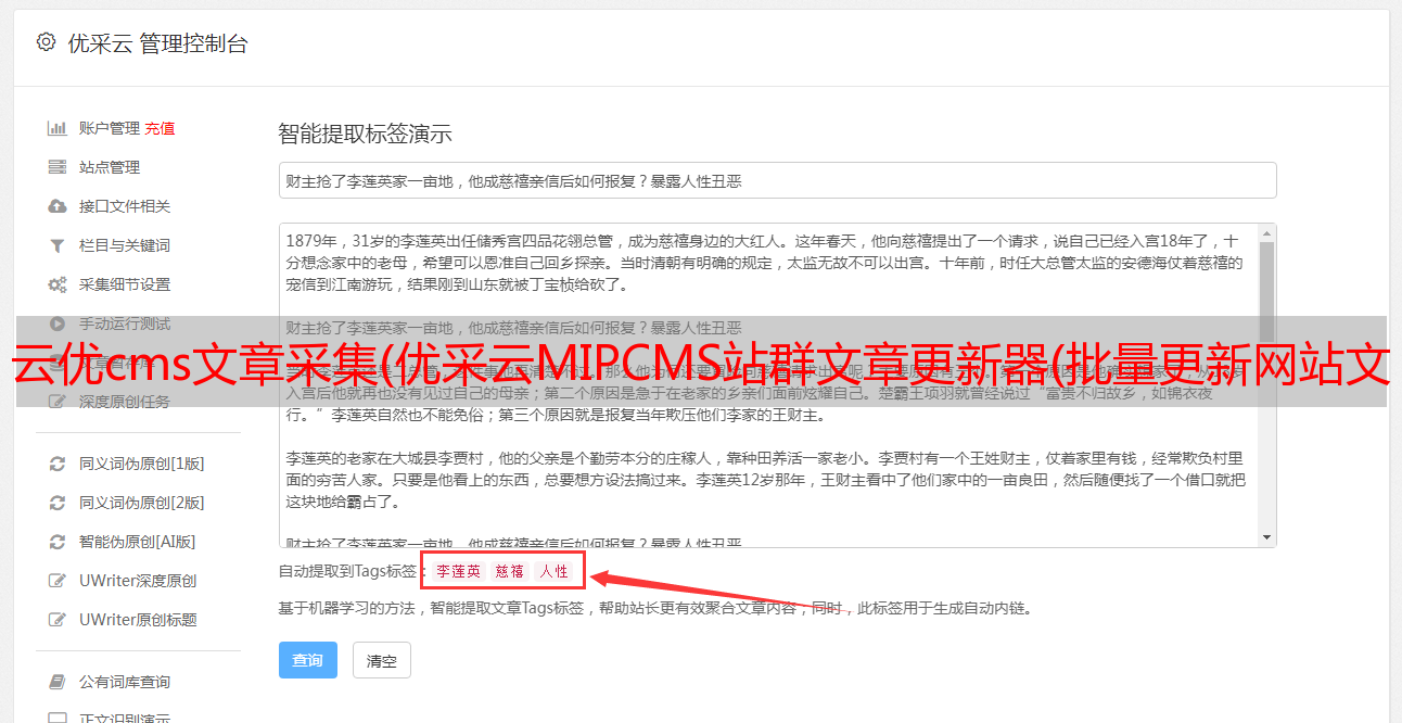 云优cms文章采集(优采云MIPCMS站群文章更新器(批量更新网站文章工具) )