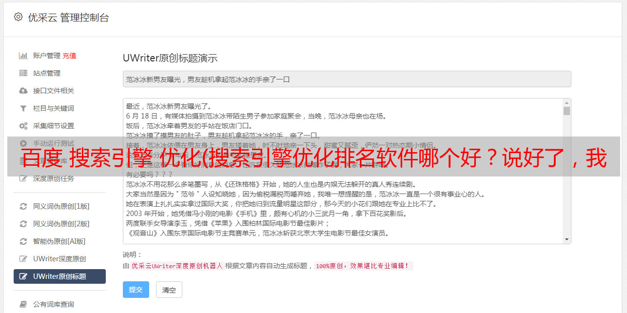 百度搜索引擎排名优化软件,更好的优化网络——选择正规方式更好更稳定,使用长尾词排名作为主次驱动,不能让我