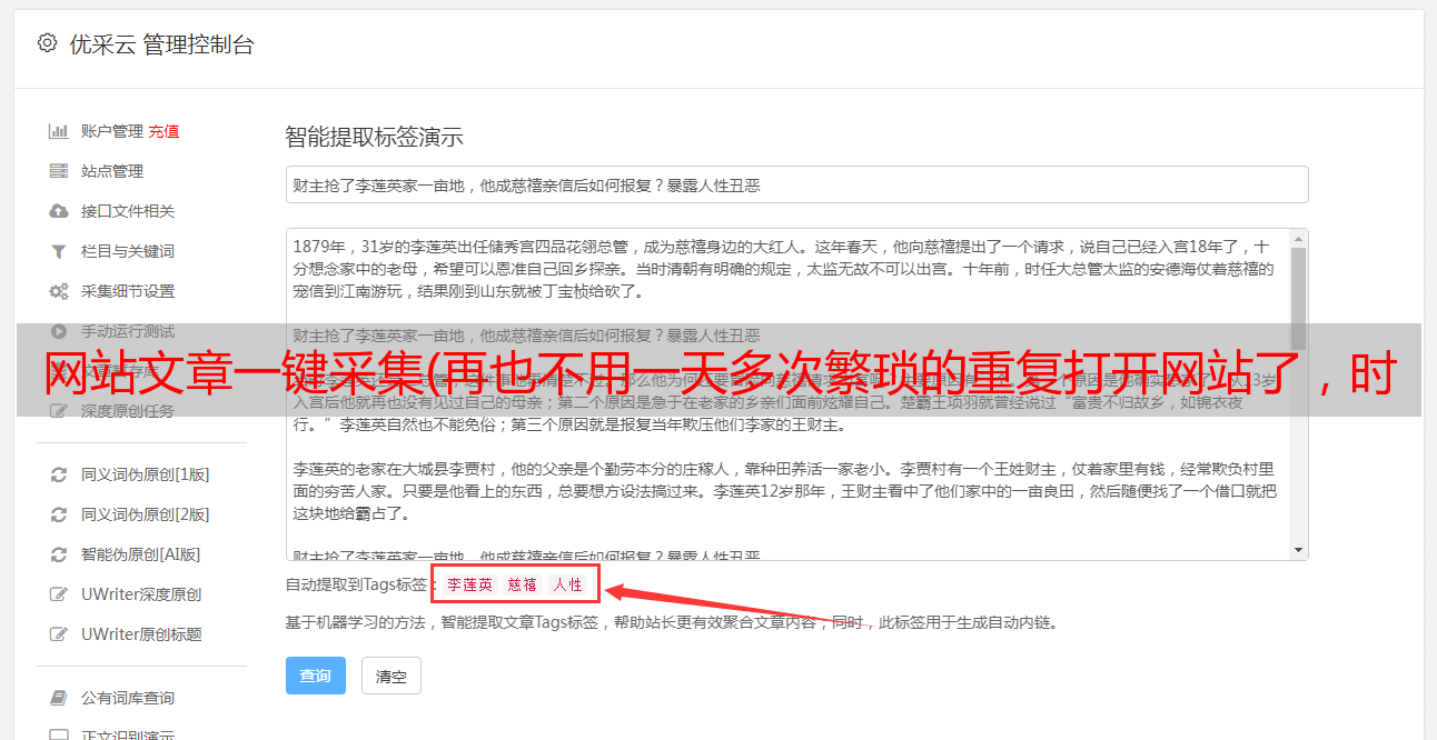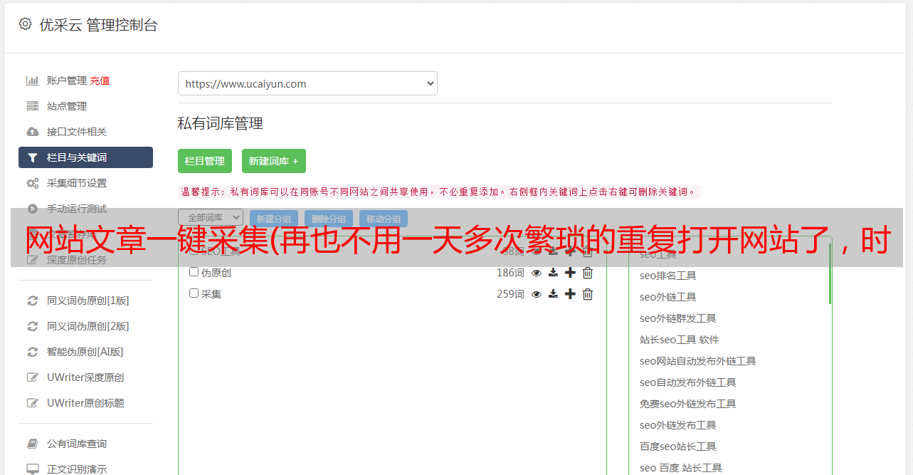 优采云 发布时间: 2021-09-05 02:12网站文章一键采集(再也不用一天多次繁琐的重复打开网站了,时间就是金钱!)
