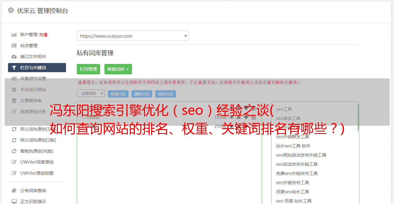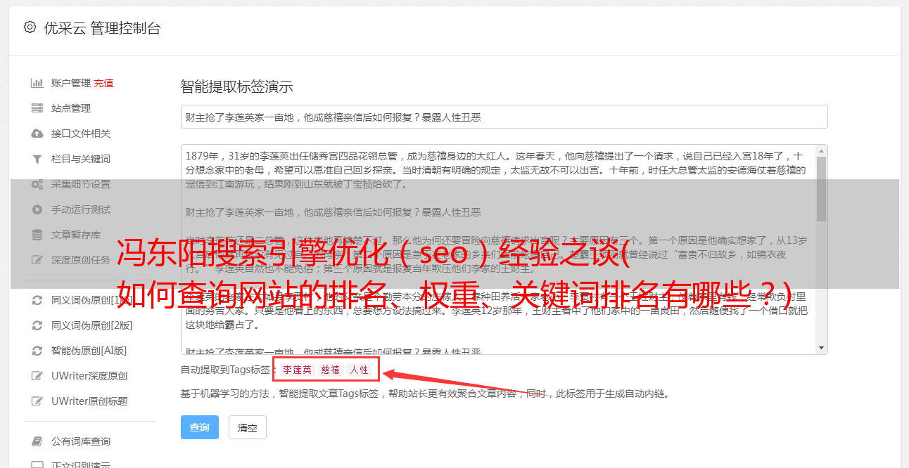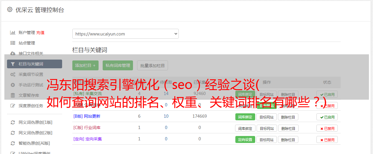 优采云 发布时间: 2021-09-05 03:30冯东阳搜索引擎优化(seo)经验之谈(