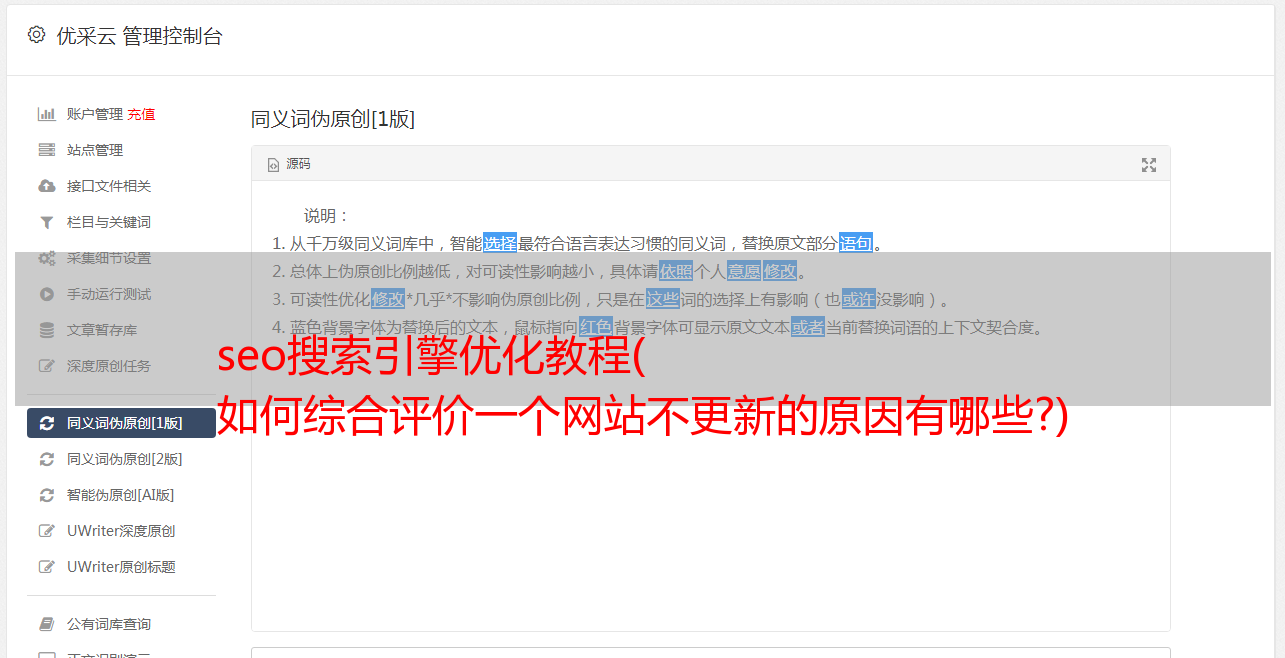 在网站权重还在积累的阶段,尤其是新站3-6个月内,采集、组合、伪原创的文章已经通过软件发布,并且内容不可读,句子不流畅,很容易延迟K主页和快照此时的更新。