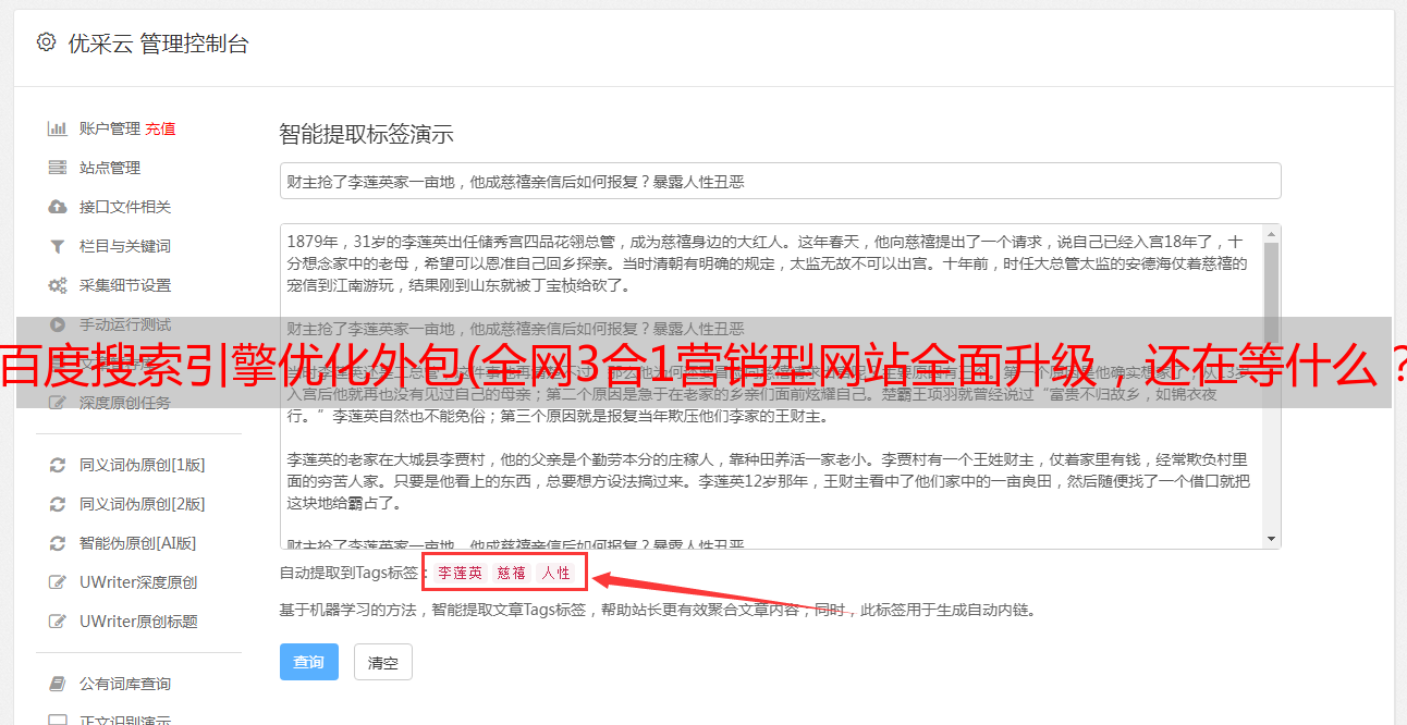 独创的SEO优化系统让收录你的网站这样的搜索引擎更多,排名更高,