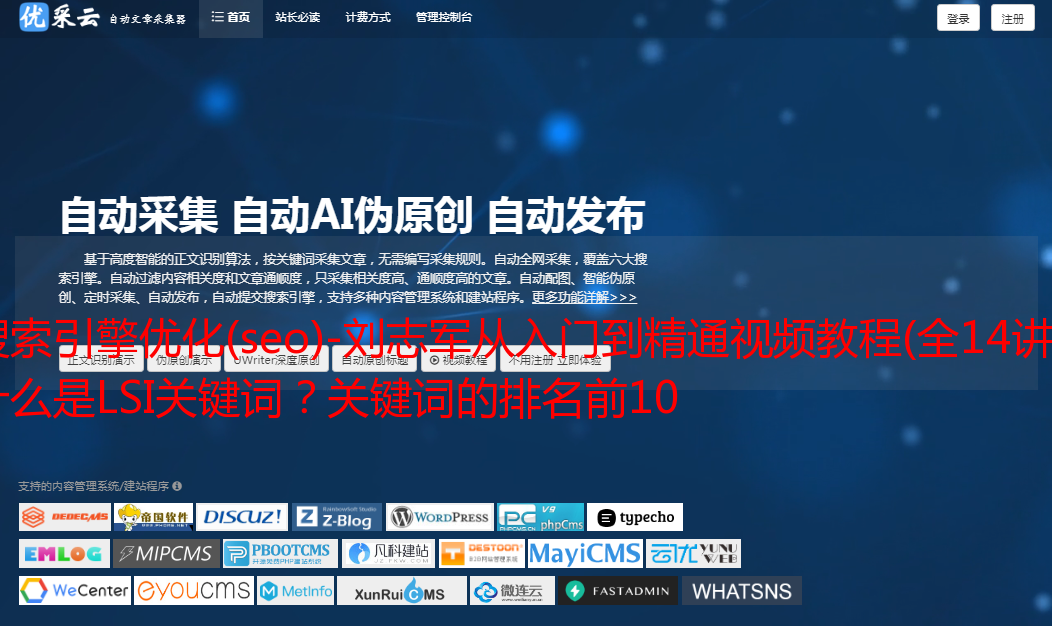 搜索引擎优化(seo)-刘志军从入门到精通视频教程(全14讲)( 什么是LSI关键词?关键词的排名前10的网站分析)