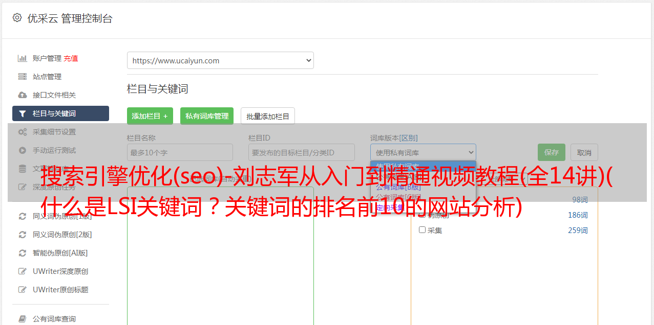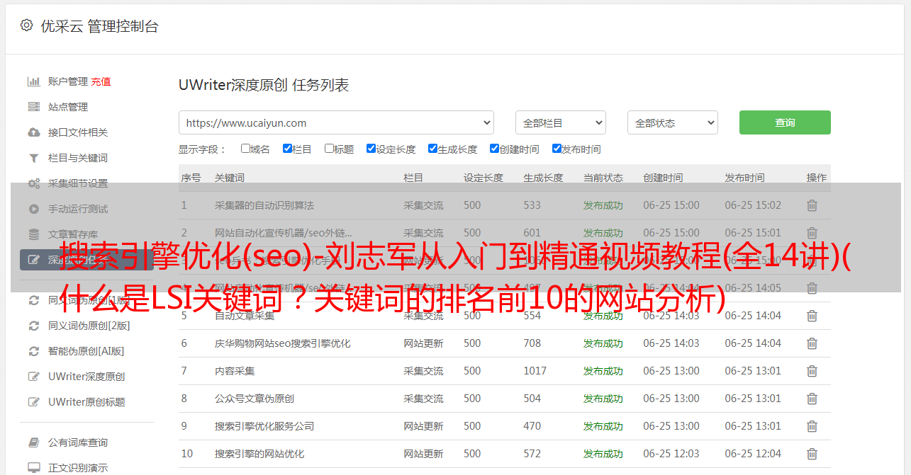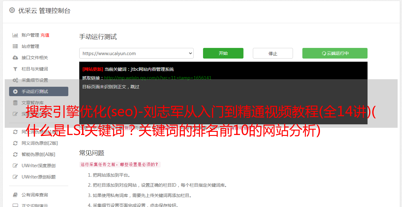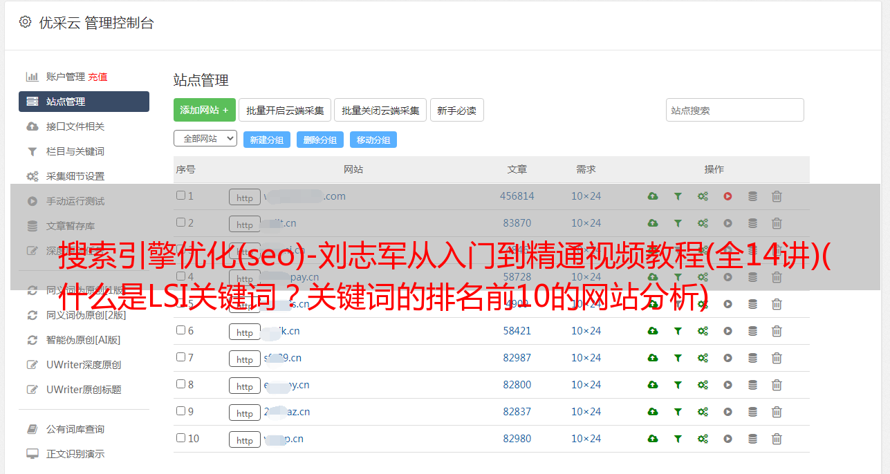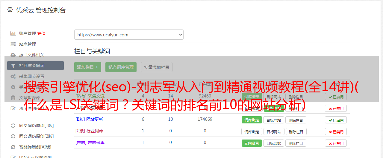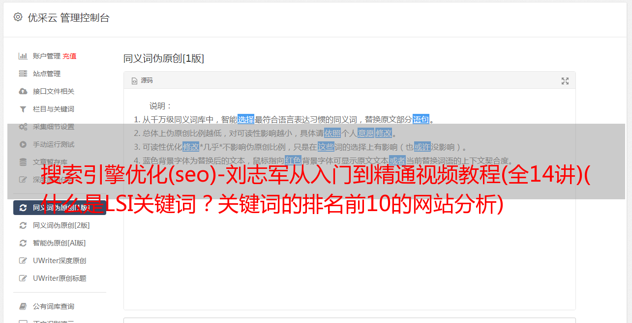 优采云 发布时间: 2021-09-05 14:18搜索引擎优化(seo)-刘志军从入门到精通视频教程(全14讲)(