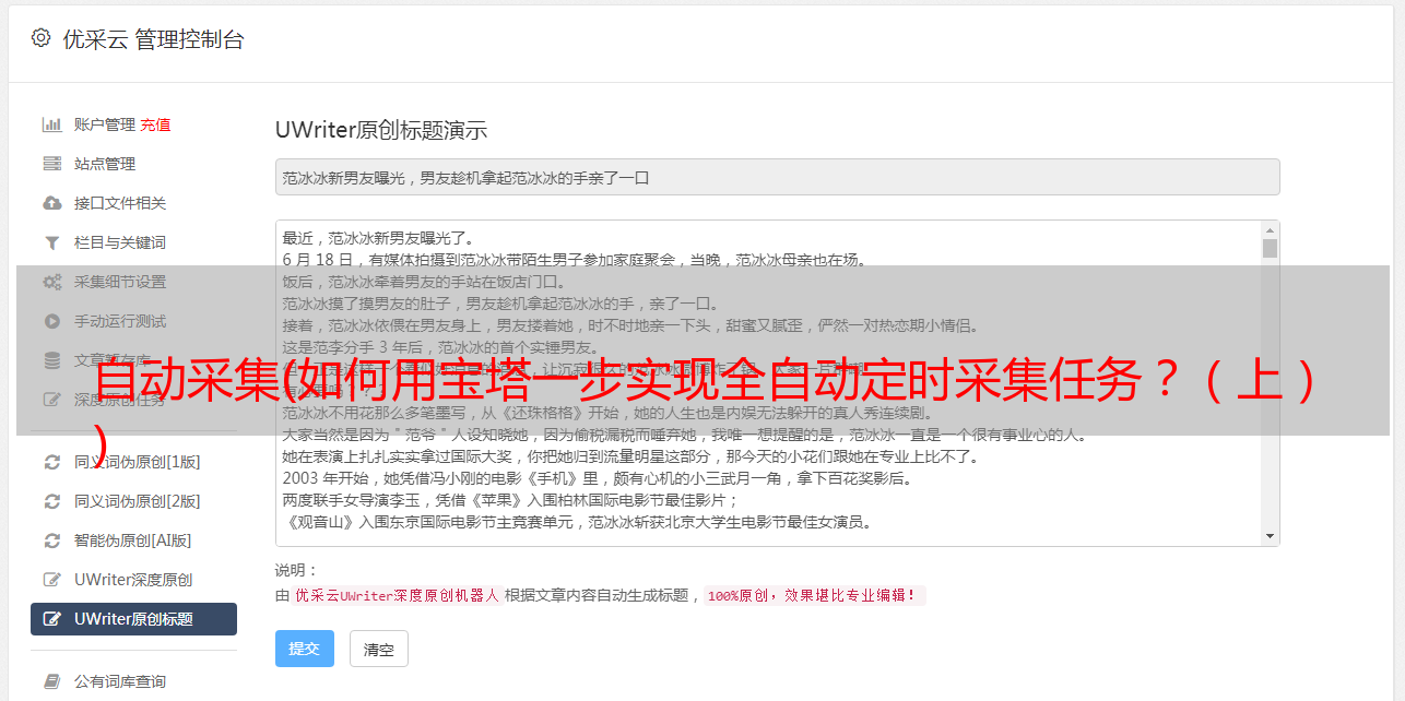 优采云 发布时间: 2021-09-05 16:00自动采集(如何用宝塔一步实现全自动定时采集任务?(上)