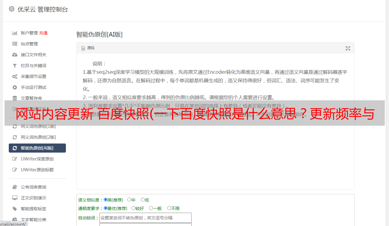 优采云 发布时间: 2021-09-05 18:33网站内容更新 百度快照(一下百度快照是什么意思?更新频率与网站更新速度有关系)
