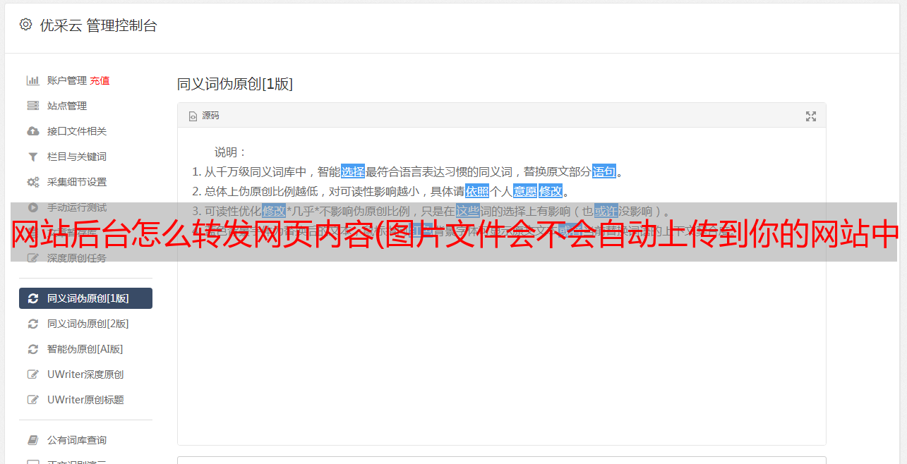 优采云 发布时间: 2021-09-05 20:07网站后台怎么转发网页内容(图片文件会不会自动上传到你的网站中来