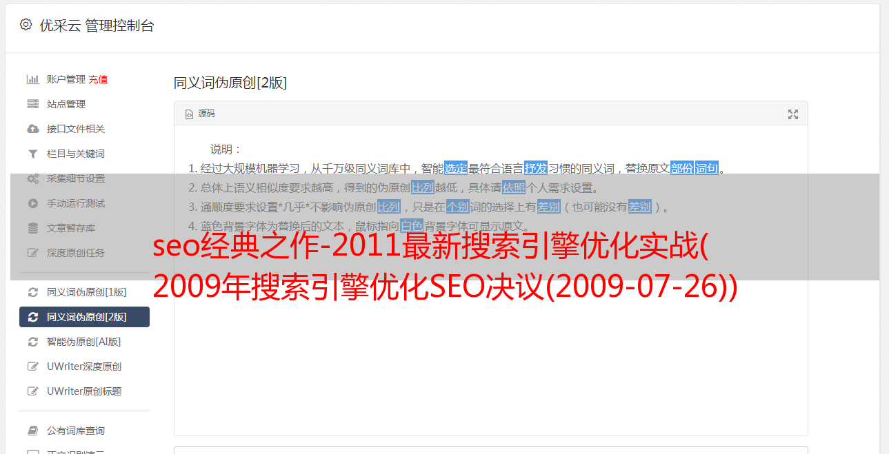 优采云 发布时间: 2021-09-06 01:25seo经典之作-2011最新搜索引擎优化实战(