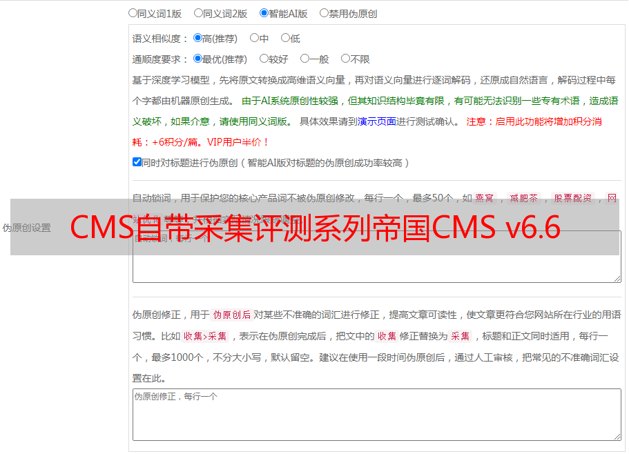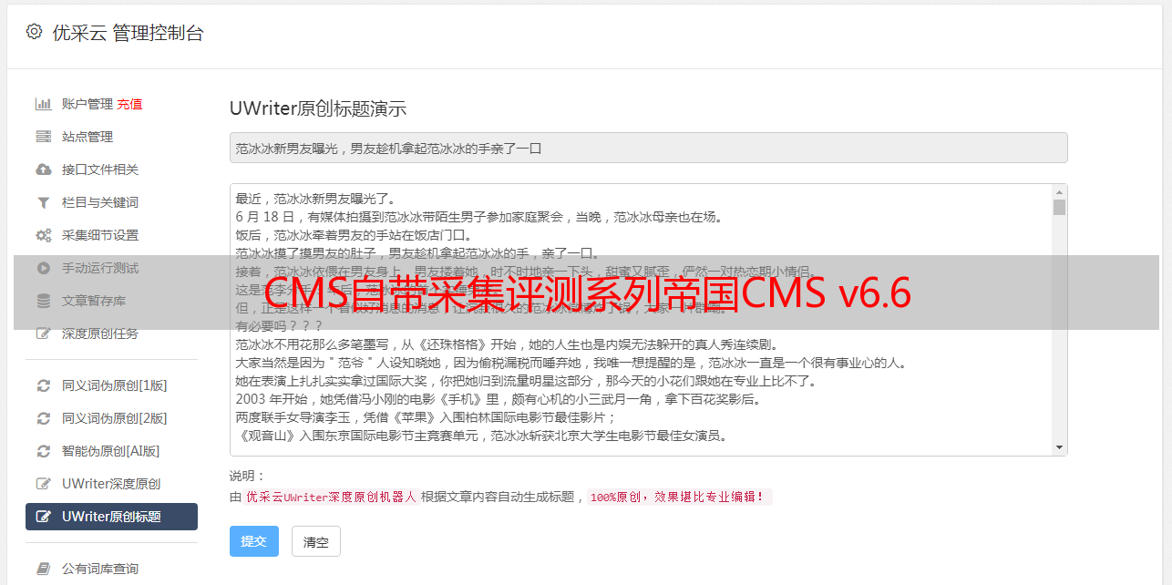 优采云 发布时间: 2020-08-19 11:01CMS自带采集评测系列帝国CMS v6.6