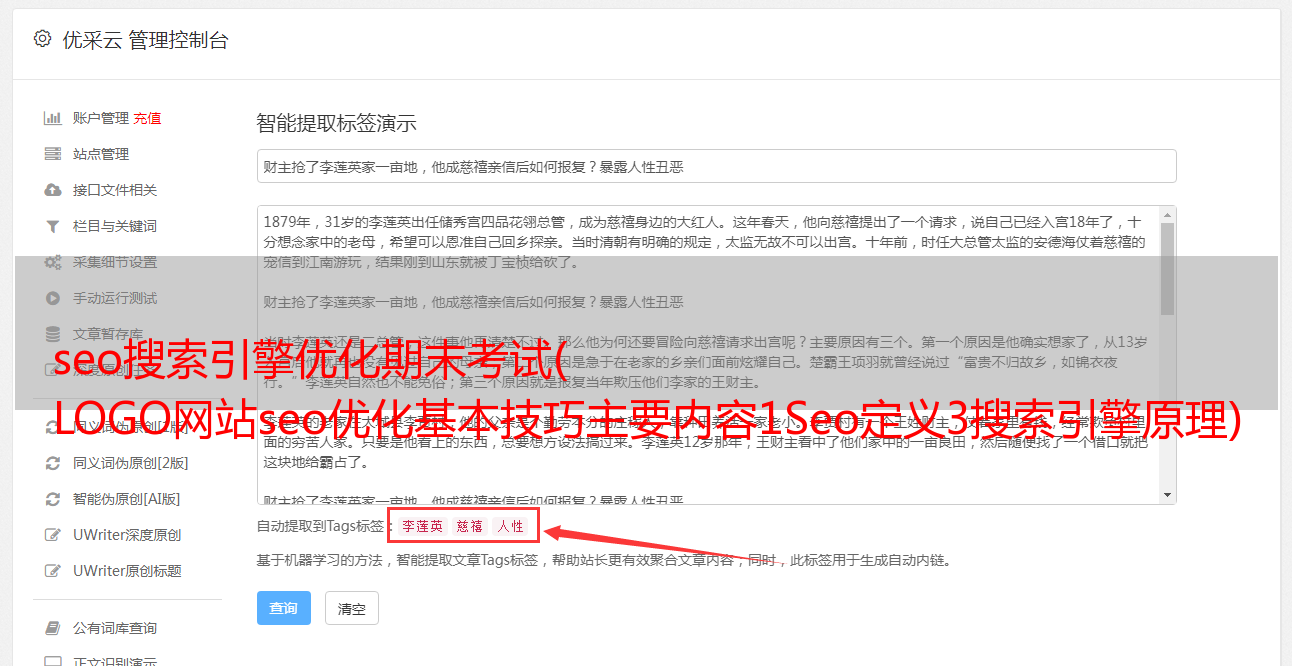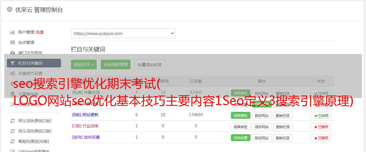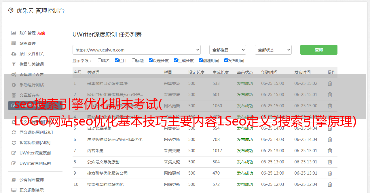 优采云 发布时间: 2021-09-06 06:15seo搜索引擎优化期末考试(