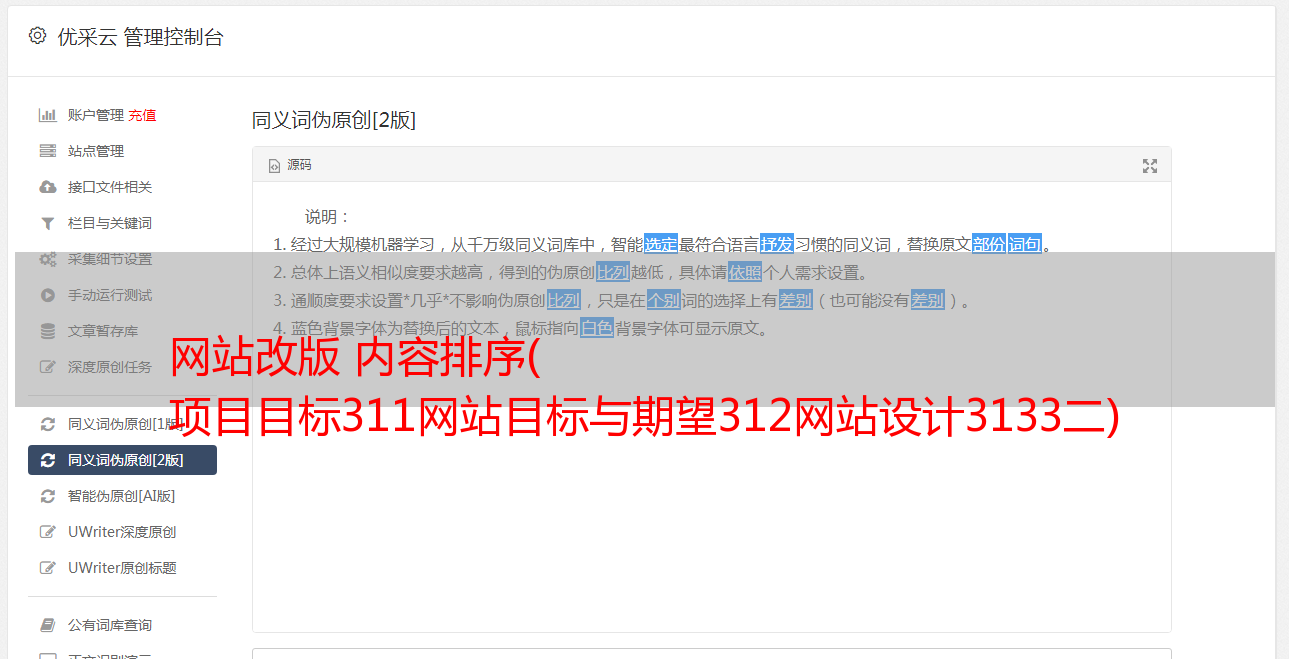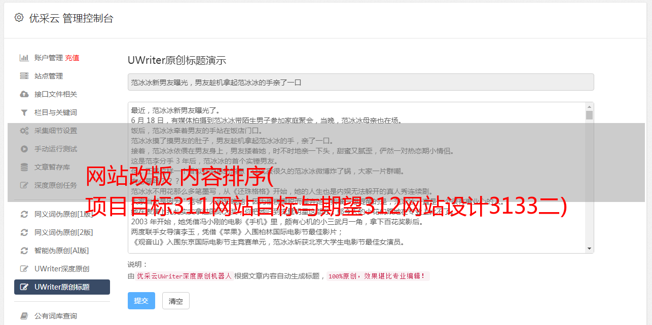 优采云 发布时间: 2021-09-06 10:20网站改版 内容排序(