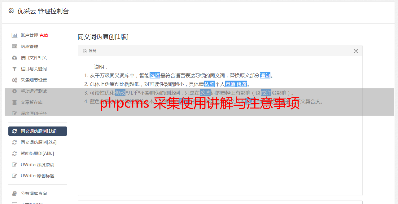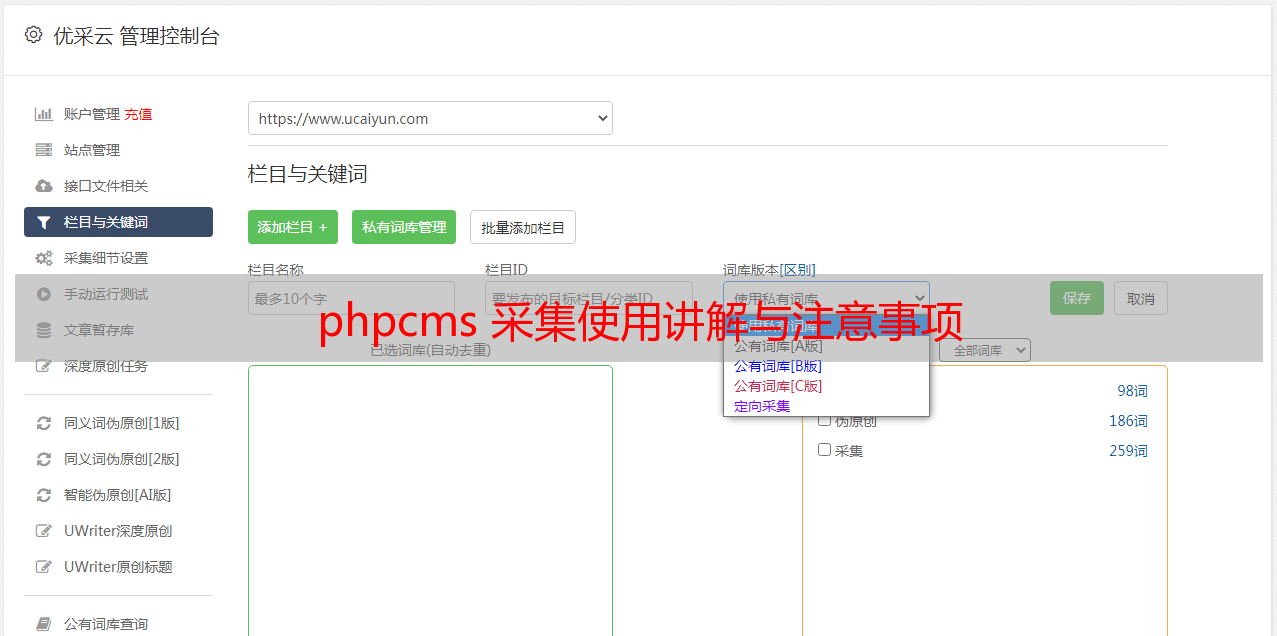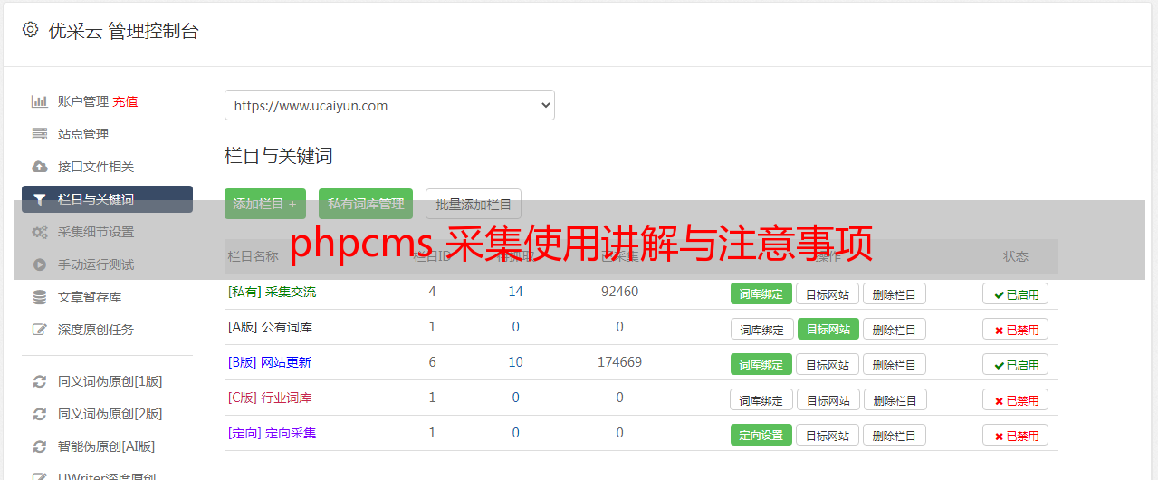 优采云 发布时间: 2020-08-19 17:14phpcms 采集使用讲解与注意事项