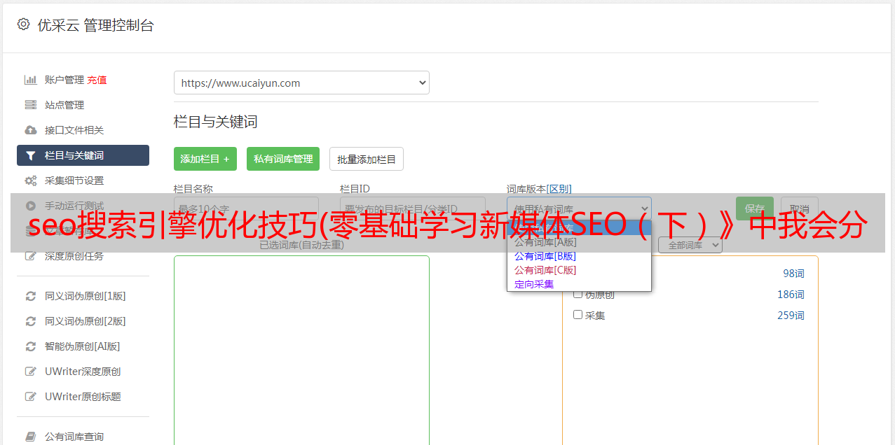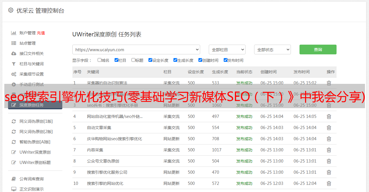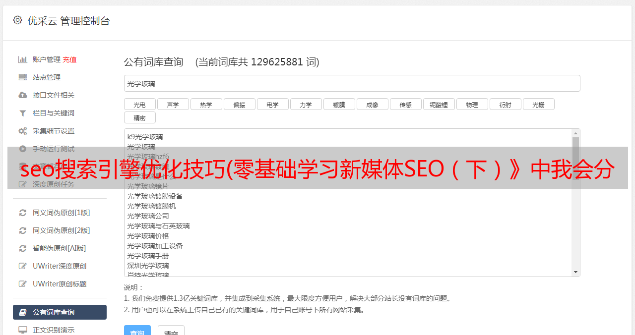 优采云 发布时间: 2021-09-06 17:21seo搜索引擎优化技巧(零基础学习新媒体SEO(下)》中我会分享)