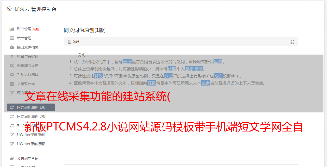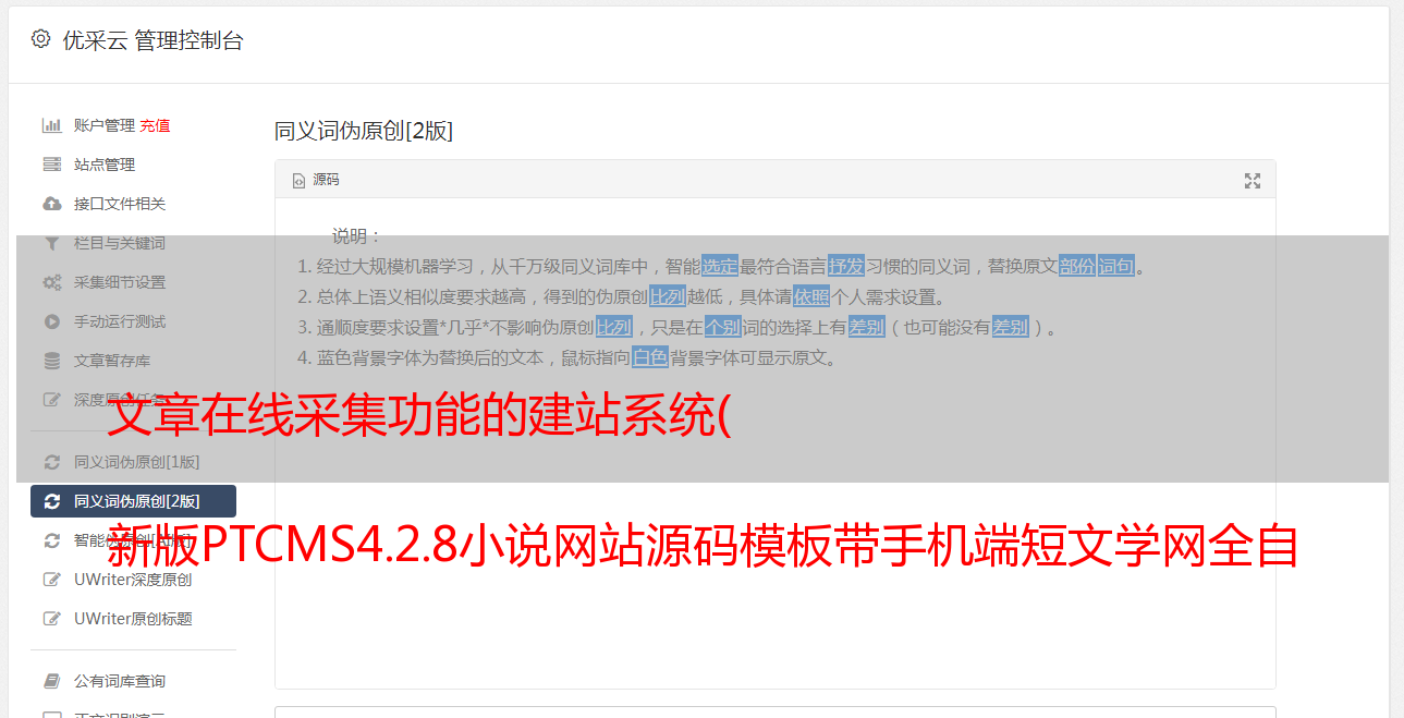 文章在线采集功能的建站系统( 新版PTCMS4.2.8小说网站源码模板带手机端短文学网全自动_全网首发功能介绍)