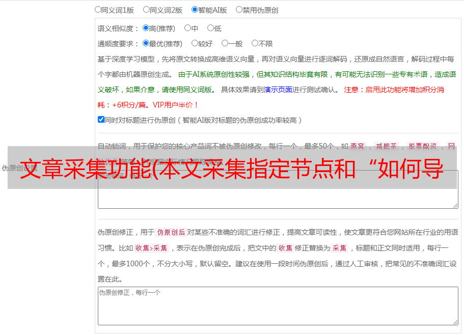 文章采集功能(本文采集指定节点和“如何导出采集内容”的说明)
