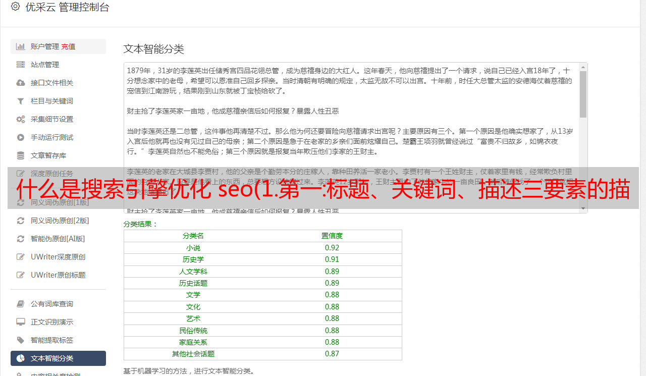优采云 发布时间: 2021-09-07 03:27什么是搜索引擎优化 seo(1.第一:标题、关键词、描述三要素的描写)