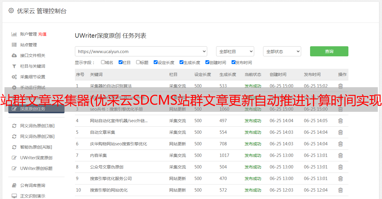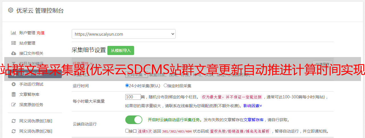 站群文章采集器(优采云SDCMS站群文章更新自动推进计算时间实现 )