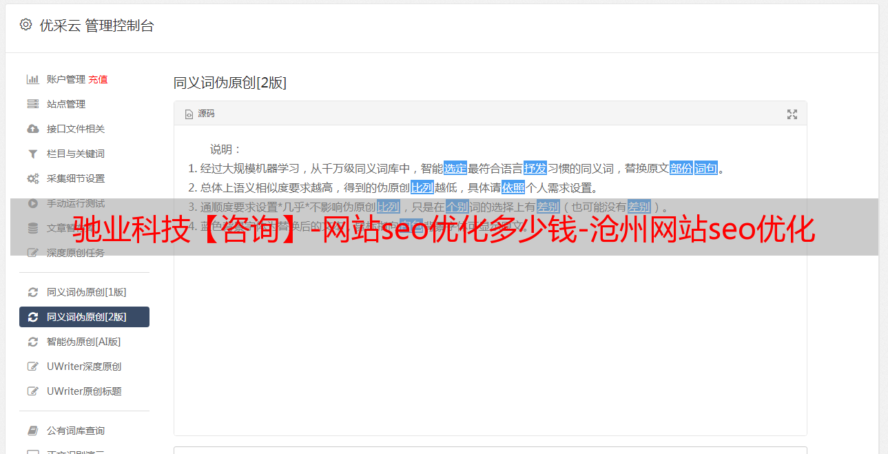 优采云 发布时间: 2020-08-19 23:46驰业科技【咨询】-网站seo优化多少钱-沧州网站seo优化
