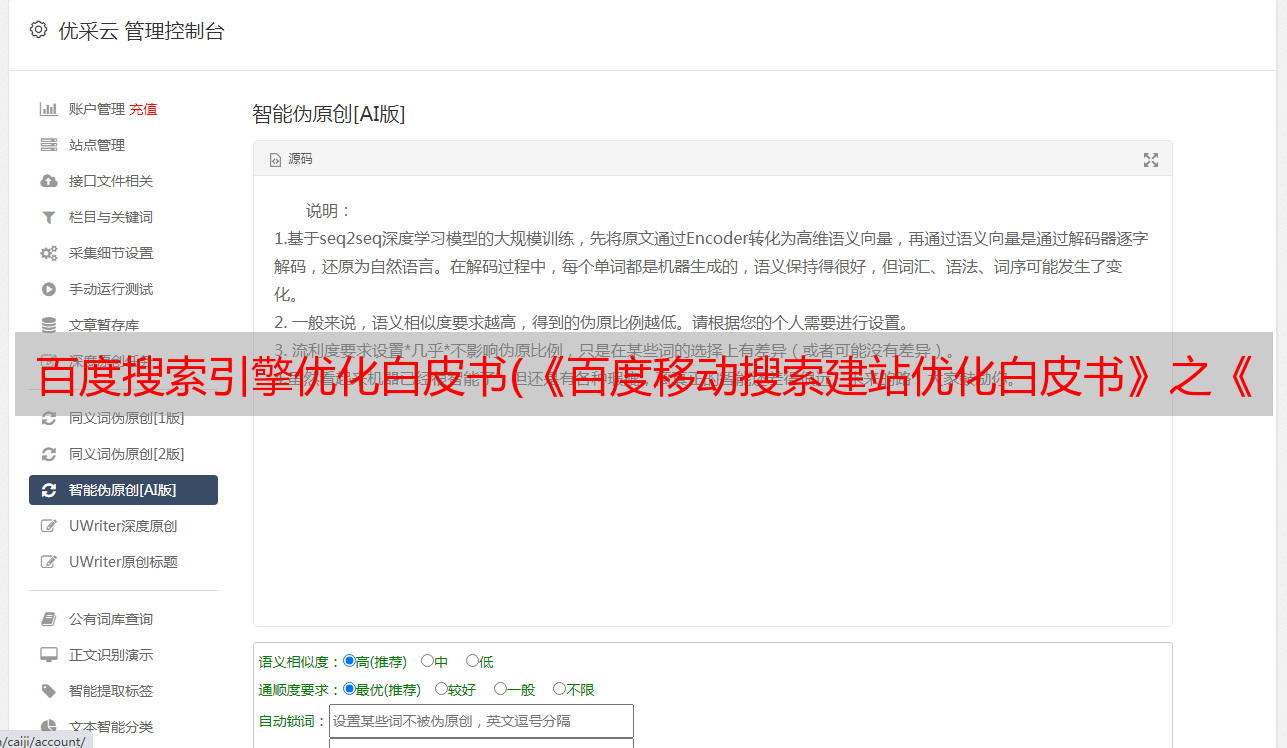 优采云 发布时间: 2021-09-07 09:12百度搜索引擎优化白皮书(《百度移动搜索建站优化白皮书》之《网站建设篇》)