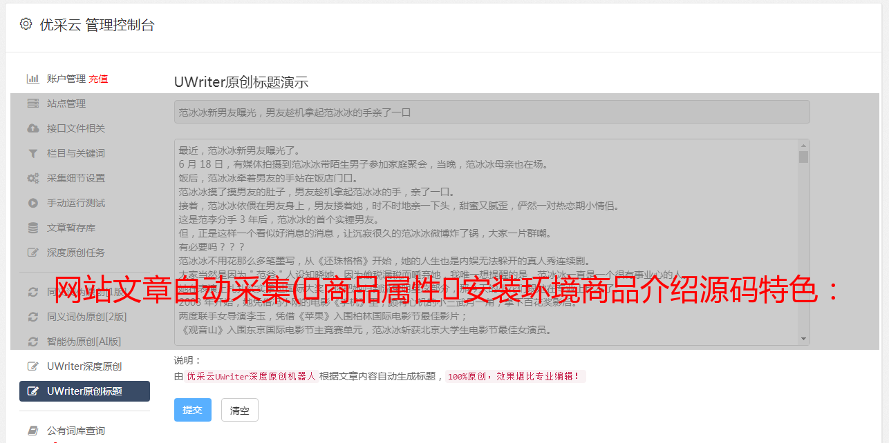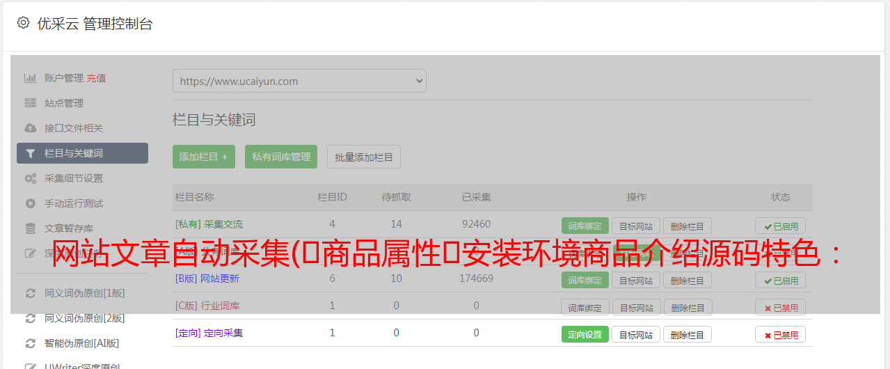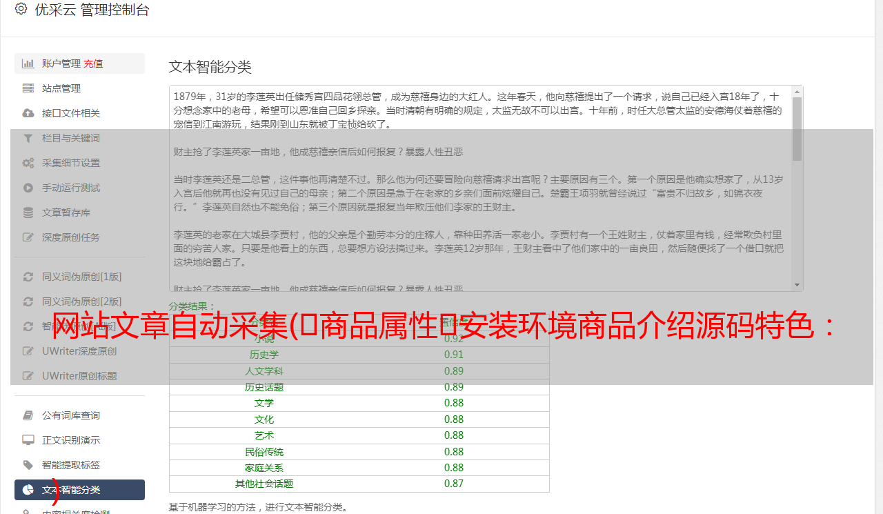 优采云 发布时间: 2021-09-07 16:05网站文章自动采集(商品属性安装环境商品介绍源码特色: