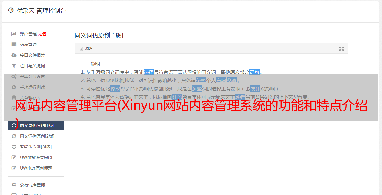 优采云 发布时间: 2021-09-07 17:19网站内容管理平台(Xinyun网站内容管理系统的功能和特点介绍