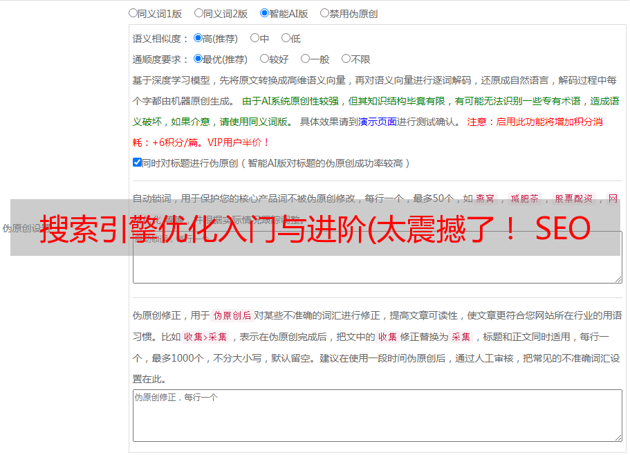 想分析seo教程的朋友:搜索引擎优化入门与进阶(第二版)电子版,其实大家都关心上面讨论的话题。本来,写几个好的引流文案很容易,但是这些SEO文案却能得到一点点流量。追求使用内容页面设计促进引流的目的,最重要的策略是自动化!如果一篇SEO文章可以得到一个UV(一天),如果我们能写10000篇文章,每天的访问量可以增加10000。说起来很简单。实际写的时候,一个人一天只能写30篇,最好写60篇左右。就算操作了一些伪原创平台,也就一百条了!浏览到这里,你应该离开seo教程:搜索引擎优化介绍与进阶(第二版)本专题电子版,看看吧,一起来看看如何自动生成文章!