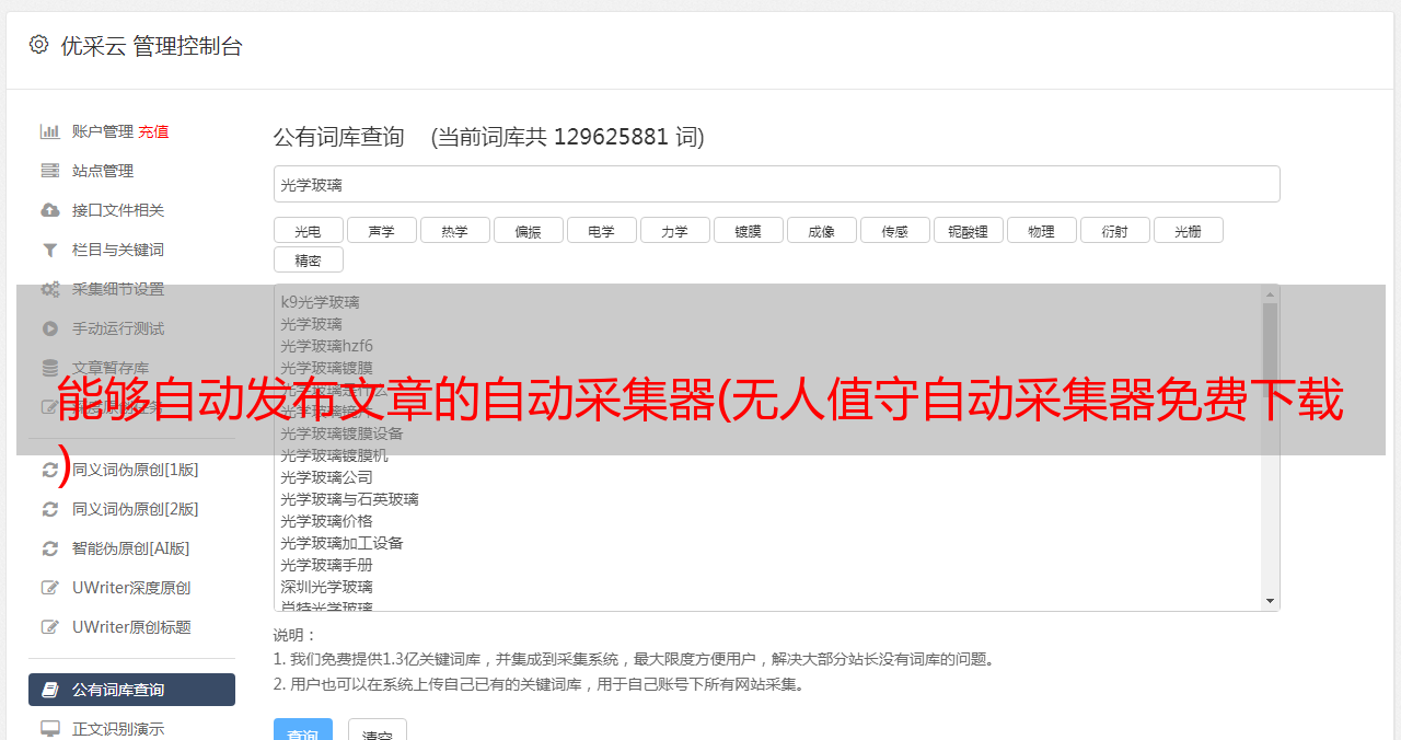 信息反馈可以让您快速了解工作状态。无人值守免费全自动采集器功能介绍下载链接httpwwwzzcitynetproductproductaspshare28466特点1设置计划24小时自动工作,无需人工干预2通过独立生产与网站分离接口可以支持任何网站或数据库3灵活并且强大的采集规则不仅可以采集文章可采集任何类型的信息 4 体积小,消耗低,稳定性好,非常适合在服务器上运行 5 所有规则都可以导入导出 灵活的资源重用 6 使用FTP 上传文件,稳定安全 7 下载上传支持断点续传 8 高速伪原创采集1 可以选择倒序随机采集文章2 支持自动列表URL 3 支持网站其中数据分布在多个页面采集4 自由设置采集数据项,可以单独过滤和组织每个数据项 5 支持分页内容采集6 支持包括图片在内的任何格式和类型的文件 视频下载oad 7 可突破防盗文件 8 支持动态文件 URL 解析 9 支持采集10 需要登录才能访问的网页关键词采集11 可设置防止采集敏感词 12 可以设置图片水印发布1 支持文章带回复发布,可广泛应用于论坛、博客等项目。 2 与采集data 分离的发布参数项可以自由对应采集数据或预设值,大大增强了发布规则的复用性 3 支持发布账号的随机选择 4 支持任意发布项目的语言翻译 5 支持编码转换支持UBB代码 6 可选择文件上传并自动创建年月日目录 7 模拟发布支持无法安装的网站发布操作 8 解决方案 定时工作 9 防止网络运营商劫持HTTP功能 10 可手动执行单项采集发布 11 详细的工作流监控信息反馈,让您快速了解工作状态 v2510 绿色版更新列表 1 新增支持随机插入字符串,见数据排序随机定位标记 2 添加数据排序和参数值现在可以使用时间标记来获取当前时间 3 新数据排序添加不等式标记 4 添加ed list 分析获取附加信息现在可以在数据排序中引用 5 新增功能 自动删除从文章下载失败的图片代码 6 更准确地优化动态 URL 的文件扩展名识别 7 优化开始工作时自动,可以先处理计划的现有目录 8 优化数据分页现在有2000页的上限 9 修复了匹配多个内容时选择数据项时出现乱码的问题。 10修复了自动列表和逻辑分页的数量现在支持更长的数字。下载地址 httpwwwzzcitynetproductproductaspshare28466httpwwwzzcitynetproductproductaspshare 28466