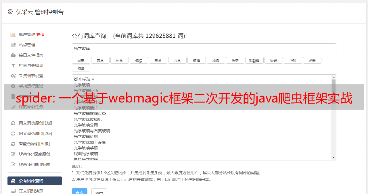 优采云 发布时间: 2020-08-20 08:25spider: 一个基于webmagic框架二次开发的java爬虫框架实战