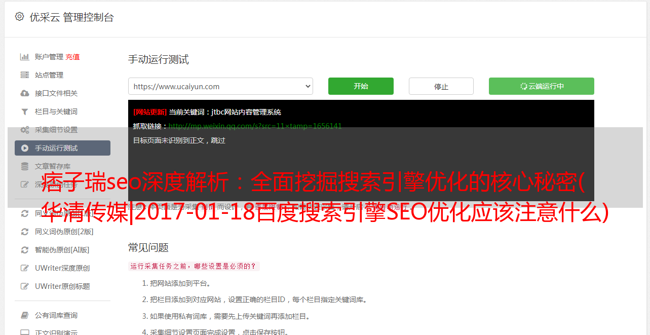 痞子瑞seo深度解析:全面挖掘搜索引擎优化的核心秘密( 华清传媒|2017-01-18百度搜索引擎SEO优化应该注意什么)