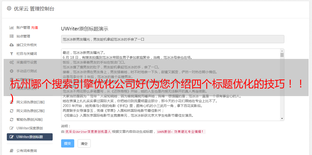 优采云 发布时间: 2021-09-09 03:00杭州哪个搜索引擎优化公司好(为您介绍四个标题优化的技巧!!