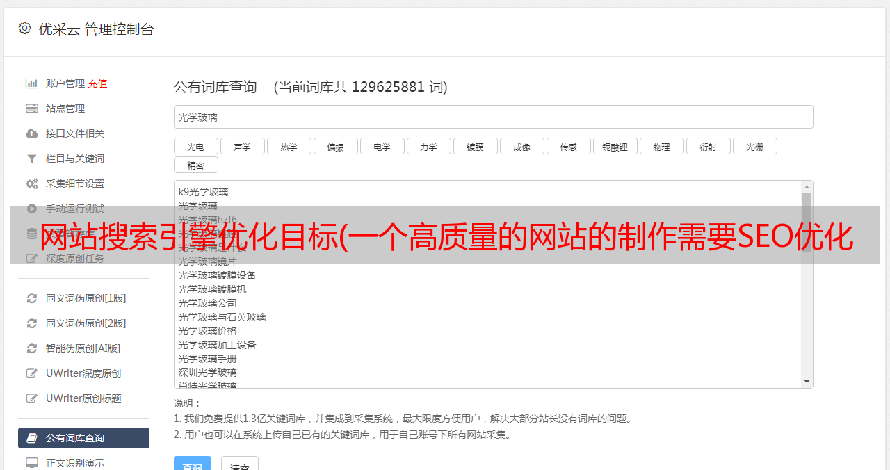 优采云 发布时间: 2021-09-09 03:01网站搜索引擎优化目标(一个高质量的网站的制作需要SEO优化,无论是日夜更新文章还是优化)