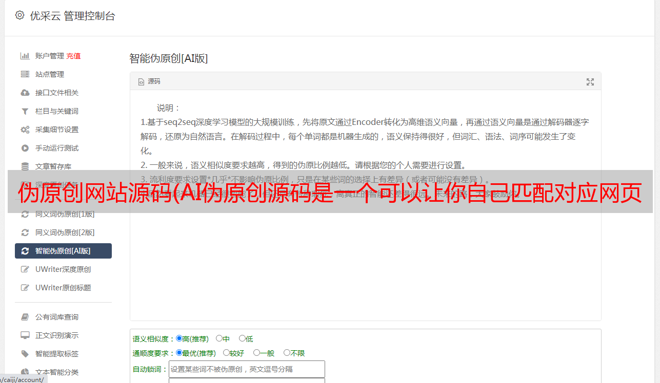 伪原创网站源码(AI伪原创源码是一个可以让你自己匹配对应网页的系统)