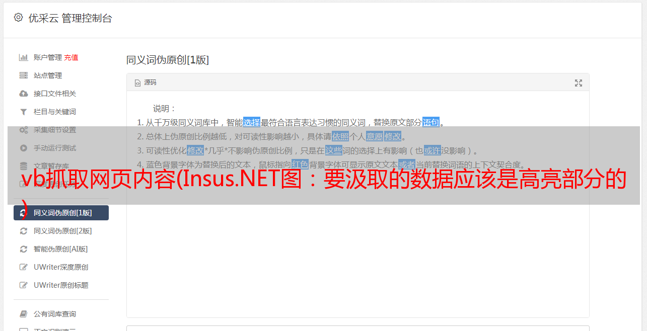 优采云 发布时间: 2021-09-09 07:03vb抓取网页内容(Insus.NET图:要汲取的数据应该是高亮部分的