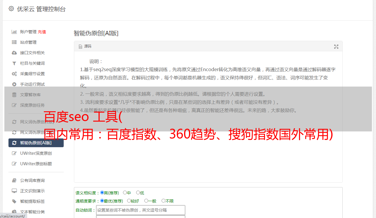 优采云 发布时间: 2021-09-09 17:01百度seo 工具(